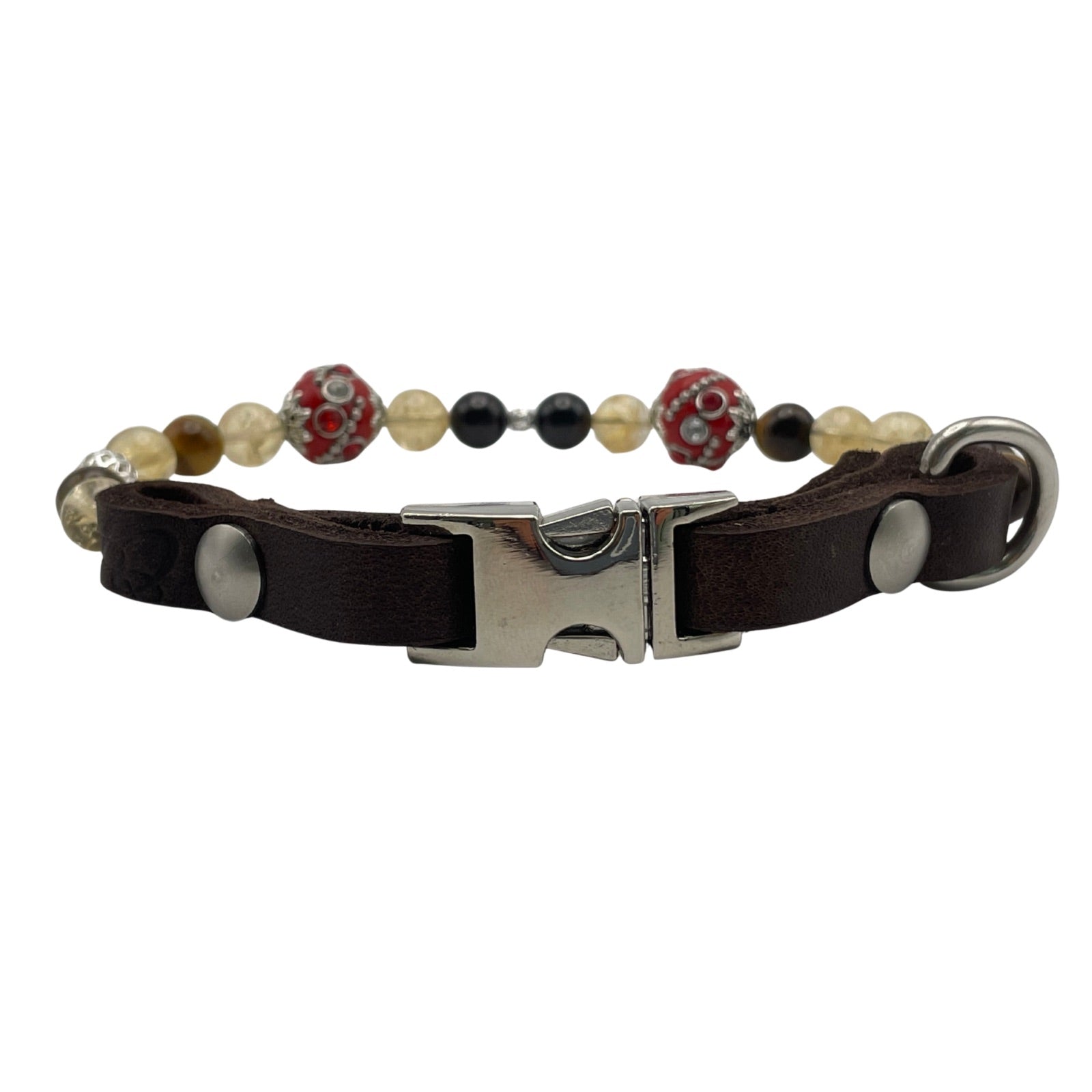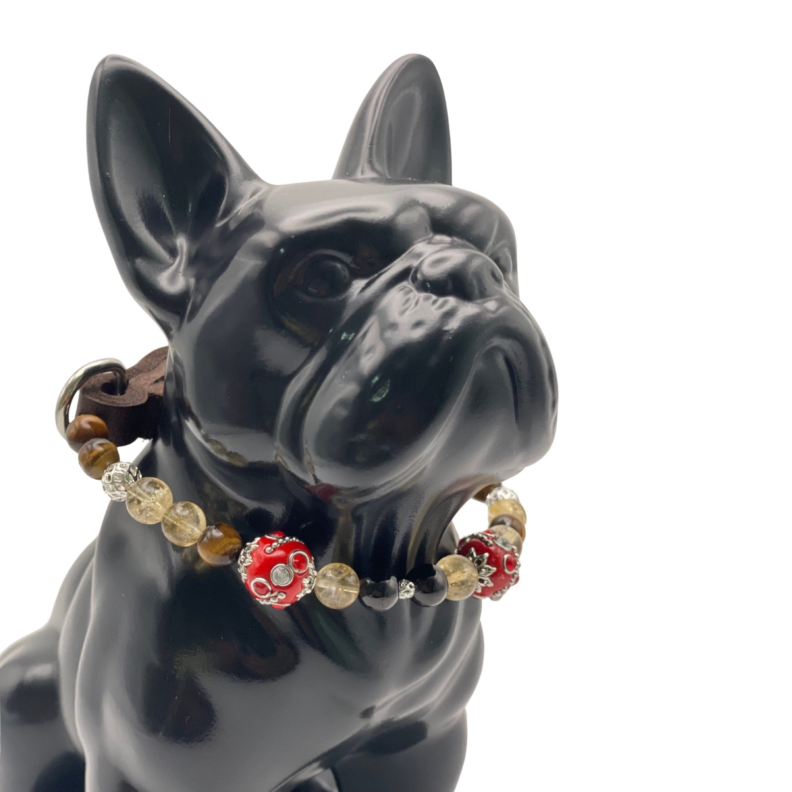 Größe: 28 cm Umfang. Hundehalsband - Edelstein-Design & Luxus vereint mit Tigerauge, Citrin und Granat