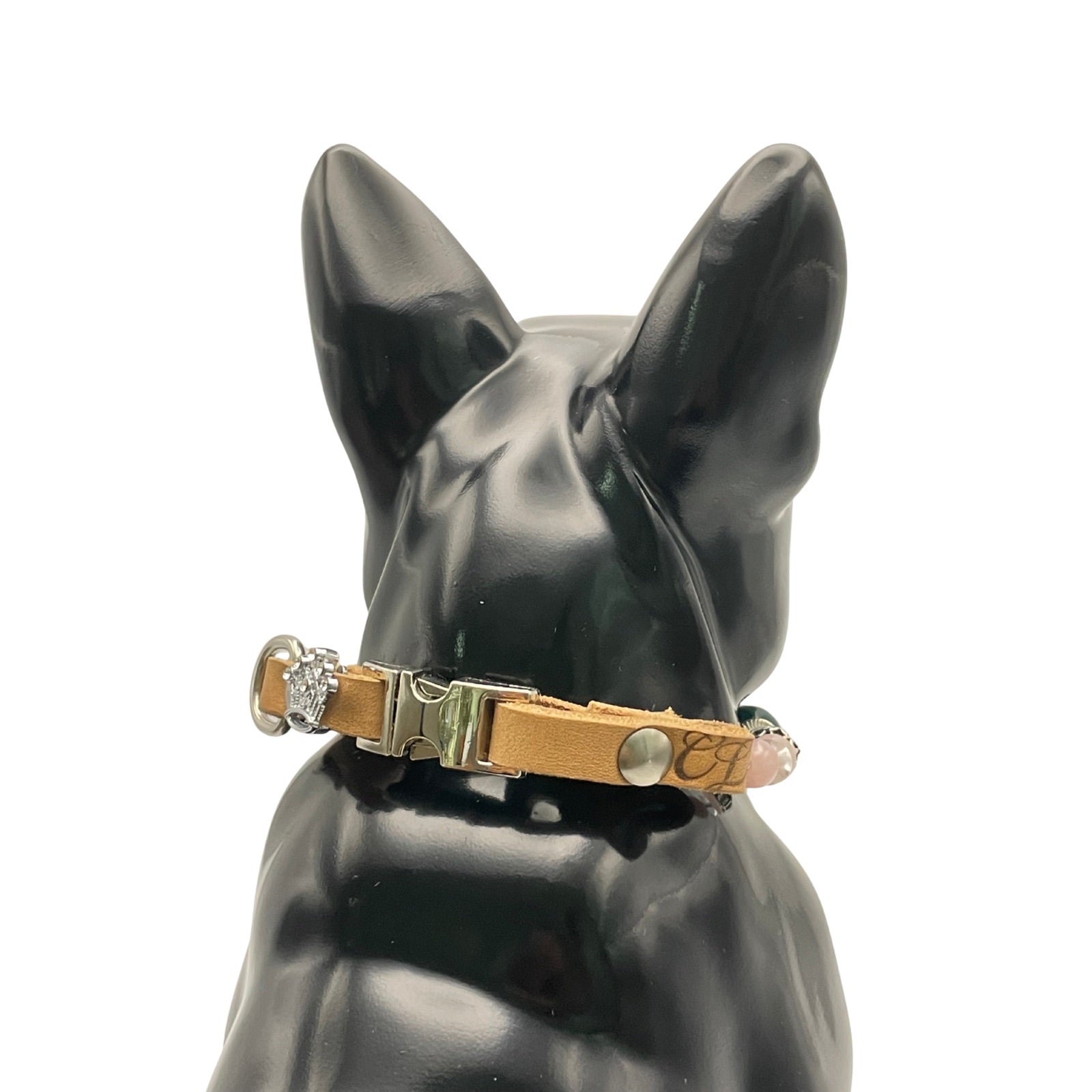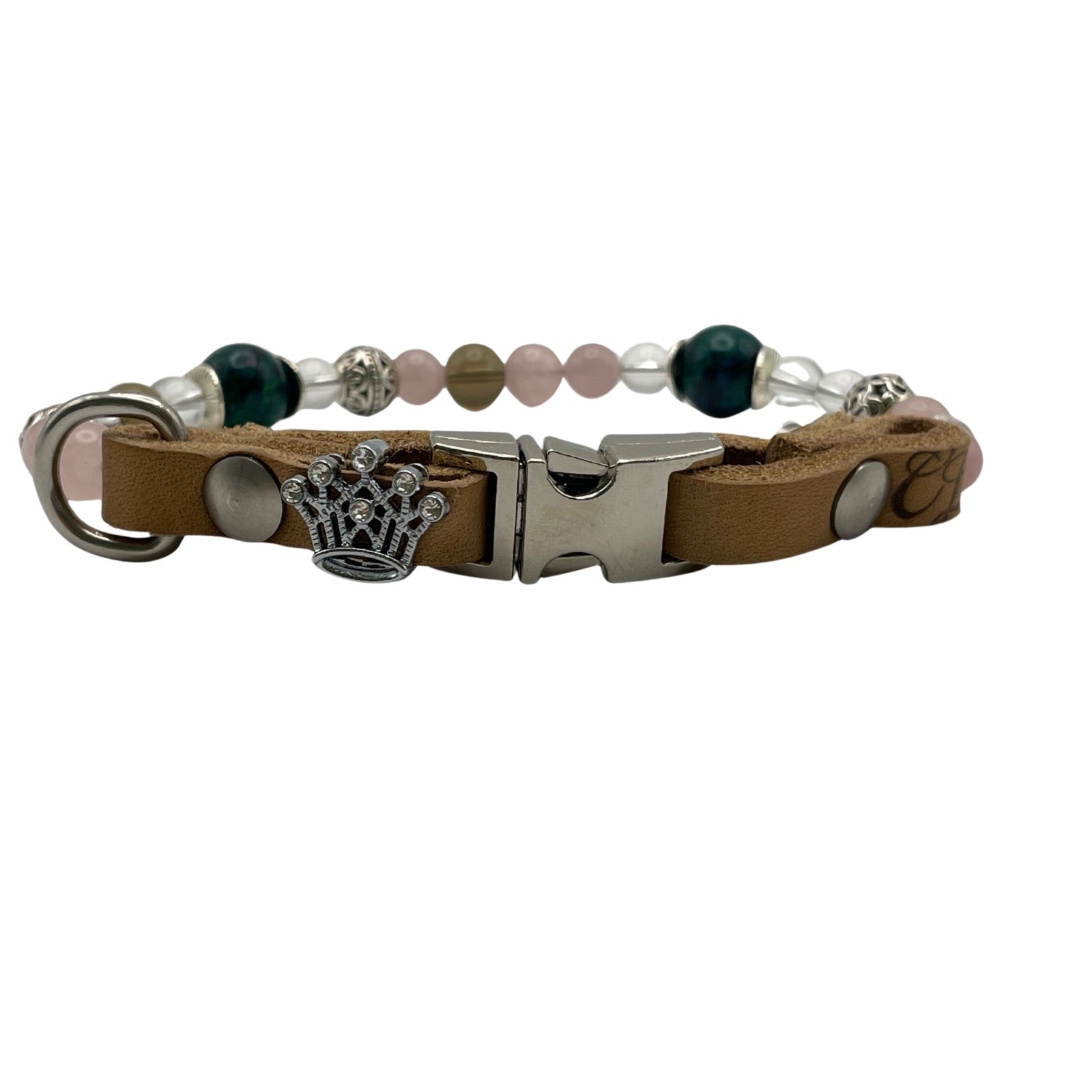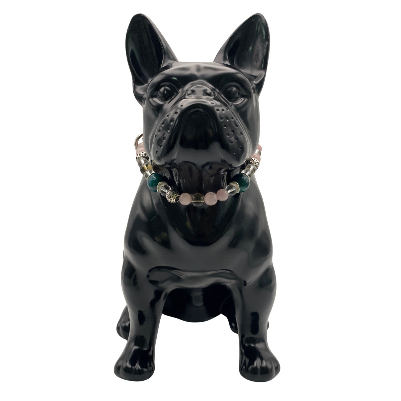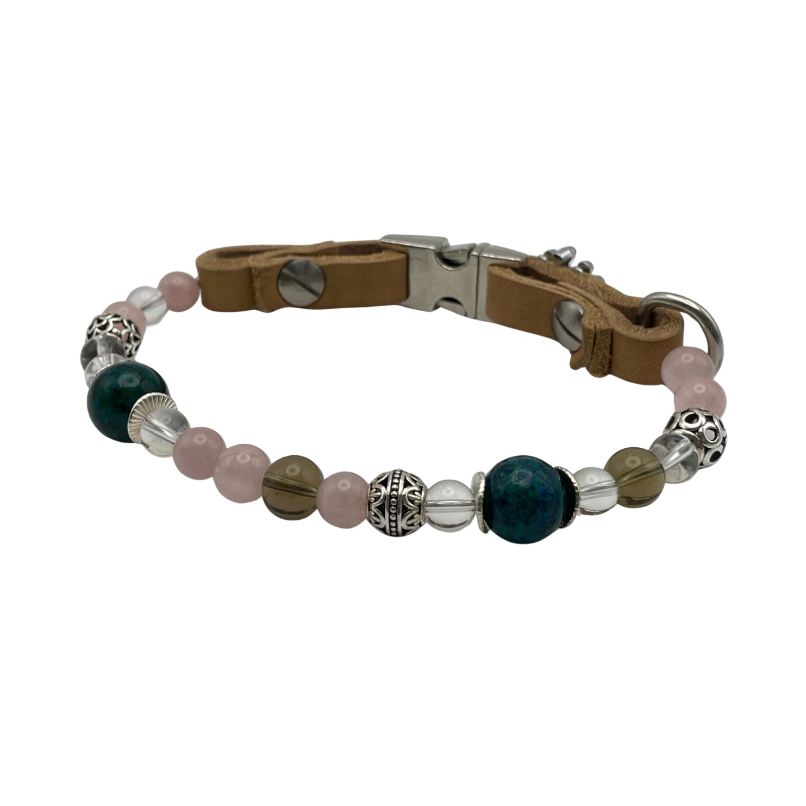 Größe: 30 cm Umfang. Edelstein-Halsband für Hunde - exklusiv & liebevoll gefertigt mit Rosenquarz, Bergkristall und Chrysokoll-Quarz